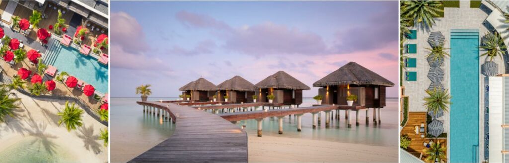 Photos from left to right: LUX* Grand Baie, Mauritius (left), LUX* South Ari Atoll, Maldives (middle) and SALT of Palmar, Mauritius (right)